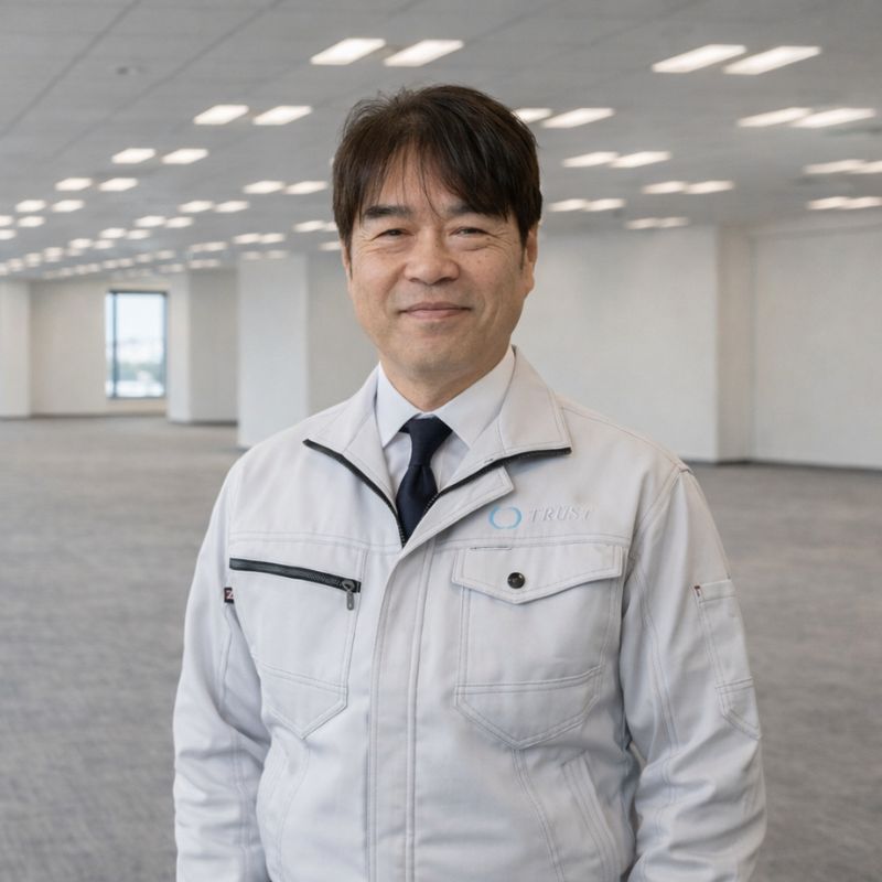 30年以上にわたり、オフィスを中心とした内装工事・原状回復工事に携わってきました。現場ごとに異なる条件や建物ルールにも柔軟に対応し、経験に基づいた確実な判断で工事を進めています。