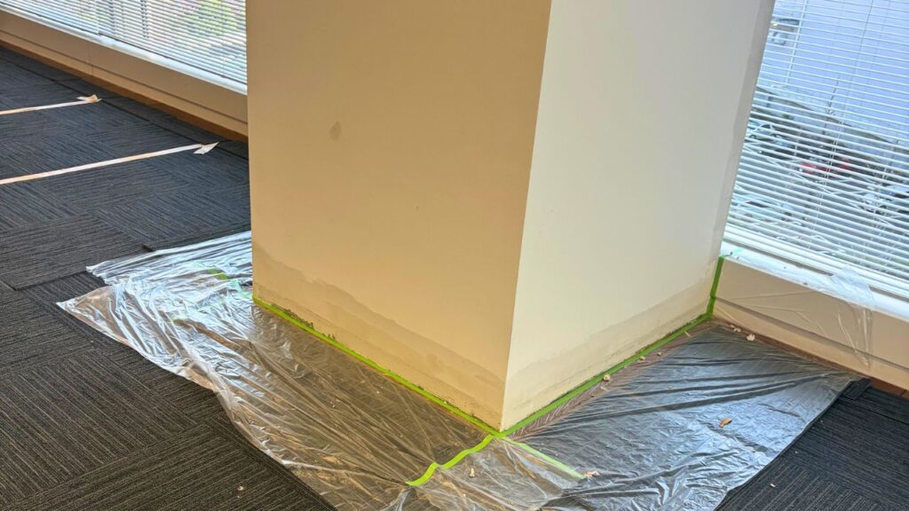 今回は、原状回復工事における塗装補修前の下地処理工程の様子をご紹介します。